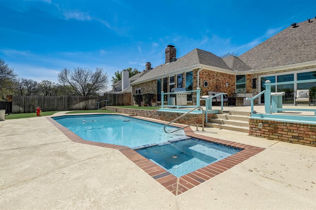 Introducing a stunning residence that caters to contemporary living and comfort. This one-story home offers a bright, open floor plan featuring two well-appointed living spaces, two fireplaces, and a sunroom. The kitchen is a culinary delight with top-of-the line stainless steel appliances, custom cabinetry, and quartz countertops. Two islands provide additional seating and built-in storage solutions. Energy efficient blue glass windows and smart home technology are woven throughout the home. The owners en-suite is a tranquil retreat with a spa like bathroom, double vanity and a spacious walk in closet. A large deck and a sparkling swimming pool are perfect for hosting poolside gatherings. The gated driveway, with a three-car garage, offers additional parking. Located in a highly sought after neighborhood with a private pond, walking path, and playground. This home is nearby shopping, dining, and entertainment making it the perfect blend of seclusion and convenience. Don't miss the opportunity to make it yours! Seller will provide 1 year home warranty through American Home Shield