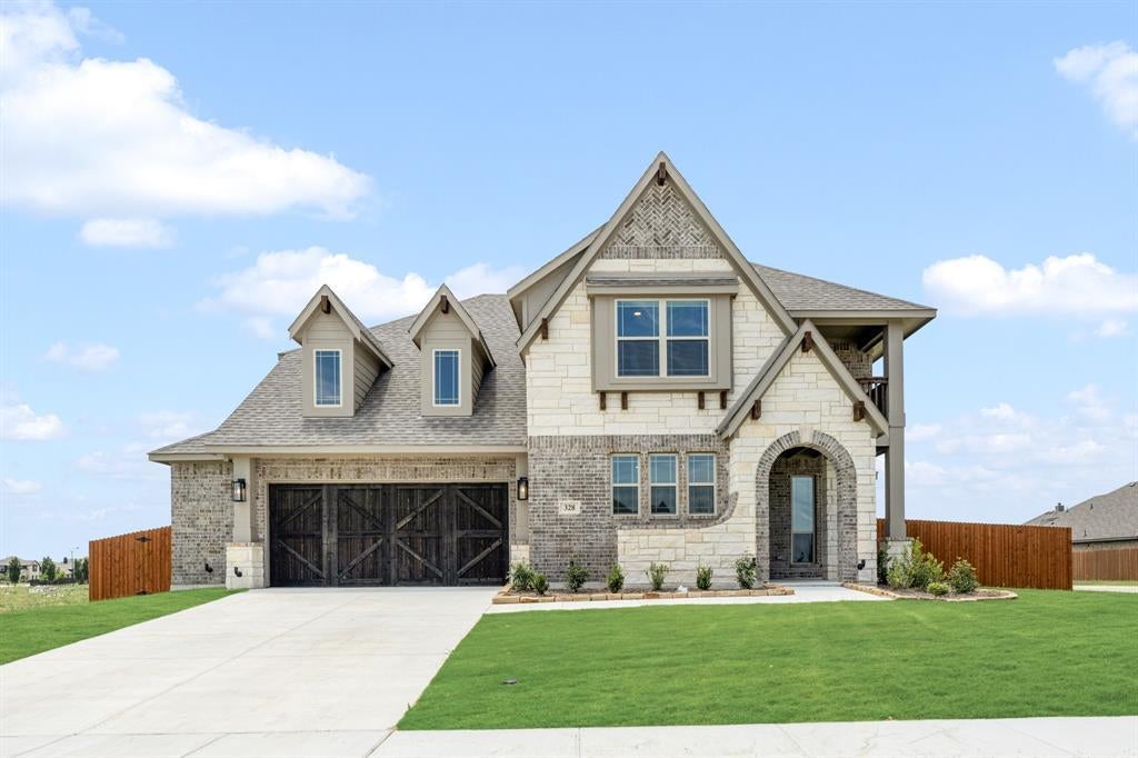 NEW! NEVER LIVED IN! Bloomfield's Magnolia II is a beautiful and functional two-story home, thoughtfully designed with 4 bedrooms, 3.5 baths, and a 2.5-car garage with an exterior access door, all set on an oversized corner lot with a striking brick and stone facade. The open layout showcases an extended Covered Patio for seamless indoor-outdoor living, complemented by a balcony and multiple covered outdoor spaces for added versatility. The Deluxe Kitchen is a true centerpiece, featuring custom cabinets, sparkling Quartz countertops, all-electric stainless steel appliances, and a layout inspired by the North Grove model. The Family Room, enhanced by a Tile-to-Ceiling Fireplace and beautiful wood floors, flows effortlessly into the breakfast nook, offering patio access and backyard views. The luxurious Primary Suite boasts a tranquil view from its window seat, an extended walk-in closet, and an ensuite bath with separate vanities, a deck tub, and a glass-enclosed shower. Upstairs, find a Game Room, a Media Room, and an additional full bath conveniently added at Bedroom 5. Practical details such as blinds, a Mudroom, an 8' front door, and uplights ensure style meets functionality in this stunning home—call today!