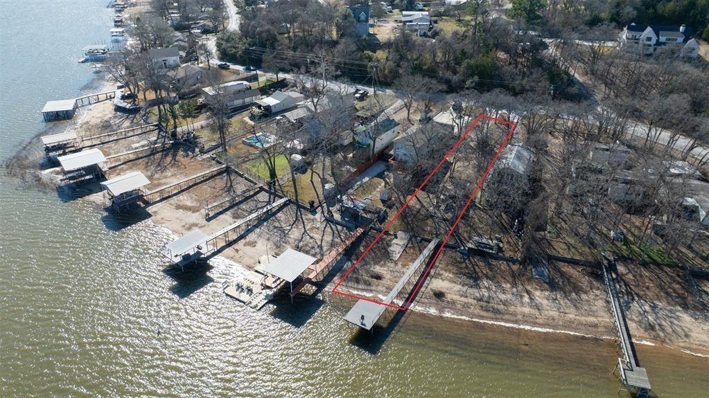 RARE OPPORTUNITY to own a slice of heaven on Lake Weatherford. Build your dream home or simply park your RV for a weekend getaway. RV hookups (electric, water, and sewer), and washer and dryer hookup in storage building. Long dock made of metal frame and solid metal posts and Trex boards for boat-ready enjoyment. This .19 acre lot is a little larger than many Lake Weatherford lots with approx. 33 feet of waterfront acreage. The 35-year City of Weatherford lease renews annually with a payment of $2,385.41 for 2024-2025. Concrete slab and pergola near the lake for BBQ grill and lawn furniture. Lot is located on the open water of the lake with beautiful views of nearby undeveloped nature preserves. Gated and partially fenced with concrete driveway entrance. Perfect as-is for RV use or build your dream home right on the lake!