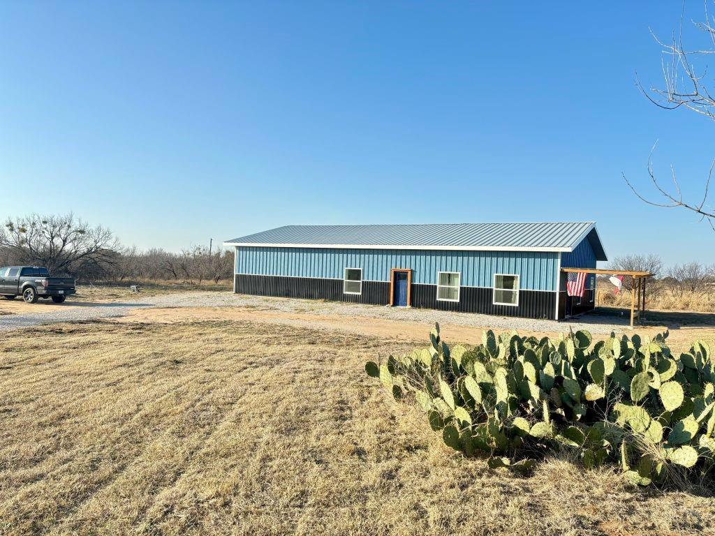 This 2-bedroom, 2-bathroom, metal frame barndominium, built in 2024, features a modern kitchen with stainless steel appliances and a large peninsula, ideal for meal preparation and entertaining. The open-concept design with 16-foot vaulted ceilings creates a spacious, airy living area. The primary suite includes a generous bedroom, walk-in closet, and a stylish master bathroom. Located on a 3-acre lot, just 1 mile west of Bangs, this property provides privacy while being conveniently close to local amenities. The large workshop is perfect for working on projects or running a business. This barndominium offers a blend of modern living with a touch of country, making it an ideal place to call home.