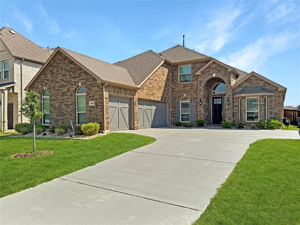 Welcome to this beautiful home in the highly acclaimed Prosper ISD. Boasting approximately 3300 square feet, this thoughtfully designed residence offers 4 spacious bedrooms, 3.5 baths, and multiple versatile living spaces perfect for everyday comfort and entertaining. The primary suite is located on the first floor and features a private en suite bath with a walk-in shower, soaking tub, and generous closet space. Two upstairs bedrooms are connected by a convenient Jack and Jill bathroom, while a fourth bedroom enjoys access to its own nearby full bath. The first floor also includes a dedicated home office and a media room for movie nights or game day gatherings. A large upstairs game room adds even more flexible space to fit your lifestyle. Step outside to a sizable backyard with a covered patio—ideal for relaxing or hosting guests. Built in 2021, this home offers modern finishes, open-concept living, and plenty of storage throughout. Enjoy all the amenities of this vibrant community, including two sparkling pools, a well-equipped workout room, tennis and basketball courts, scenic walking trails, playground and a catch-and-release fishing pond. With easy access to the Dallas North Tollway, you are never far from shopping, dining, and entertainment. This is an exceptional opportunity to live in a sought-after location with space, comfort, and convenience.