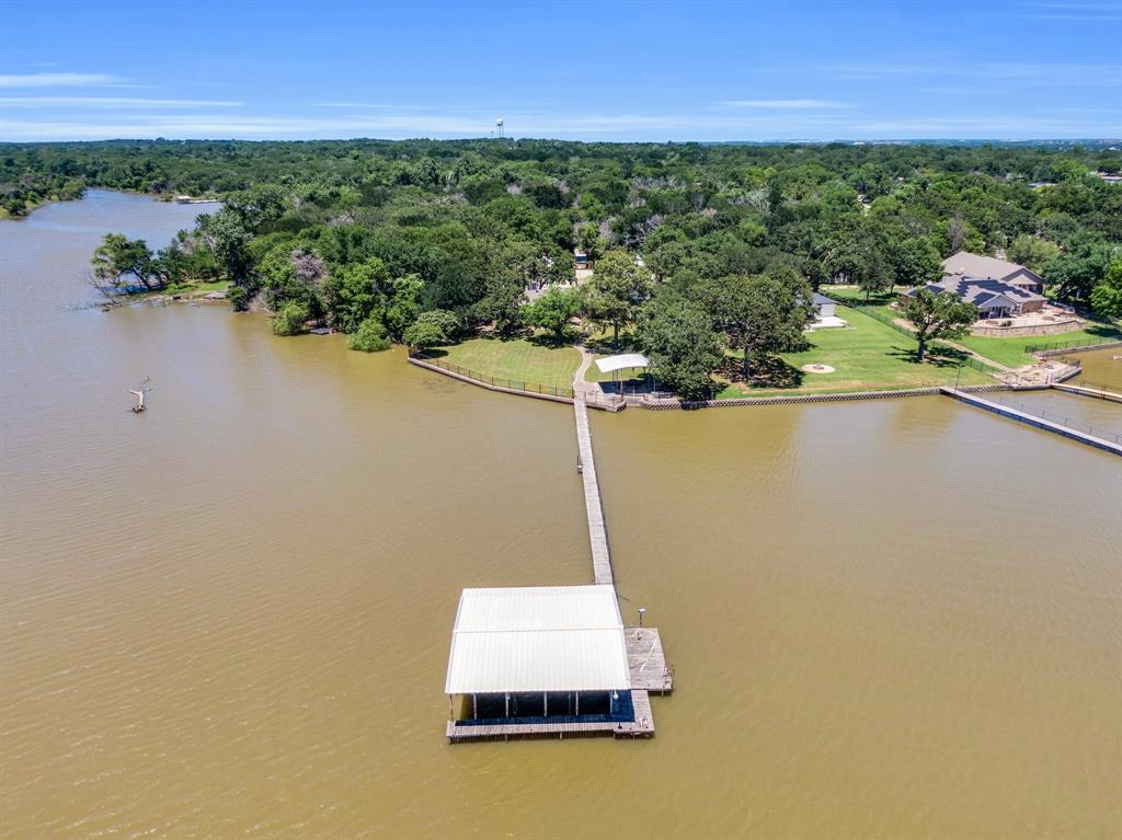 This rare lakefront home overlooks Eagle Mountain Lake, sits on half an acre, comes with a 200-foot covered boat dock that accommodates 2 - 24-foot boats, 2 lifts and in addition there is a 30x80 shop! Shop comes with a concrete slab, electricity and 4 roll up doors. There is plenty of room in there to store your water toys, vehicles, tools, you name it! There is access to plumbing and electricity in the shed, making it easy to tap into for any future improvements. The property is located on a cul de sac with a semi-private driveway with 2 other neighbors on Eagle Mountain Lake. This home, built in 1988, offers breathtaking lake views at every turn. As you step inside, you're greeted by stunning water views. The home features a split floorplan, with 3 bedrooms 2 of which, face the lake, 2 full baths and a covered outdoor area. This is ideal for entertaining or simply relaxing while taking in the tranquil lake and sunset views. Enjoy outdoor activities in the large backyard and it's lush lawn. You have plenty of room to create your outdoor oasis with a pool, grilling area and fire pit. You have access to 2 boat ramps. When water level is high enough, you have your own private boat ramp next to the house, otherwise there's a boat ramp just down the road, a 5 min drive. It's almost next door! Azle zoned schools, shopping and dining are all close and convenient. Don't miss the opportunity to own this exceptional waterfront retreat where lake life memories can be made for years to come! Property is being sold as-is.