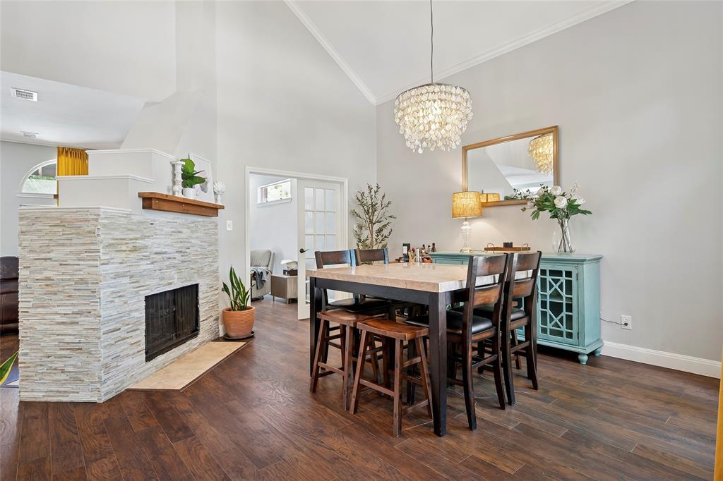 Step inside to soaring vaulted ceilings, elegant eyebrow windows, and designer touches including a Capiz shell chandelier. The flexible downstairs office or second living space (updated 2024) offers privacy and sophistication with French doors and recessed lighting.