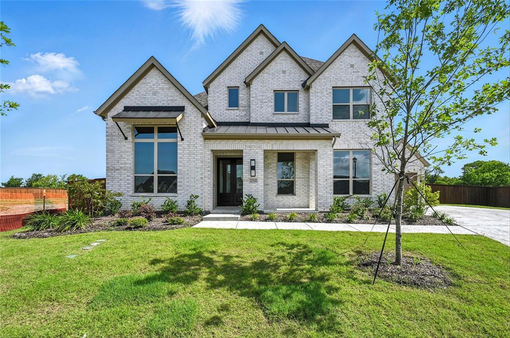 MLS# 20953008 - Built by Highland Homes - Ready Now! ~ 2 Story, 5 Bedrooms, 5-2 Bathrooms, Family, Game, Entertainment, Formal Dining, Study, 3 Car Premium cul-de-sac lot with bold modern elevation, inviting open-concept design, and soaring 20’ ceilings in the family room. Features include an extended primary suite with free-standing tub, farm-style kitchen upgrade with GE Cafe appliances, wood beams in family, engineered wood floors in main areas incl. primary & study, stone fireplace to ceiling, designer lighting, stunning tile upgrades and elegant finishes throughout. Large covered outdoor outdoor living space!