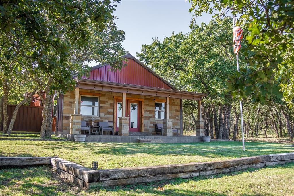 Come home to this little house on the prairie - built in 2021 - on 16.88 beautiful heavily-treed acres complete with salt-water pool, cabana, outdoor entertaining areas, newly-built tank, water well, metal storage barn and three-sided RV shed (full hook-up). Meticulously maintained with very little maintenance. The 1,015-square-foot main home or Casita includes one bedroom, one bath and fully-appointed kitchen with island, granite tops and wine bar. The home opens to a covered east-facing porch and tillable field ready for sewing oats, native grasses or wildlife food plots. The 900-square-foot one-bedroom, one-bath cabana with wood-burning fireplace is trimmed-out, painted and ready for your finishes, i.e., kitchen cabinets and flooring. The cabana is wired for your custom sound system and opens to a spacious covered porch overlooking the pool with concrete walks leading to the Casita, RV barn and outdoor sitting areas. The Casita-cabana includes three-car covered parking and additional parking under the shade of several poolside oak trees. The pool is equipped with a cover and solar blanket for warming the waters on those chilly swim days. The 20' x 20' metal barn includes a roll-up door and walk door and is perfect for storing equipment or setting up shop. The acreage also includes a large tank - built in 2023 - and 70-foot-deep water well - drilled in 2015. The well produces five to seven gallons of water per minute and includes a 3,000-gallon storage tank. The 10 acres, more or less, will be cut-out of a 45.32-acre tract. Survey to determine final acreage. The property is conveniently located 12 miles west of Brownwood between Bangs and Santa Anna. Abilene is an easy one-hour drive north and San Angelo is a little over an hour away.