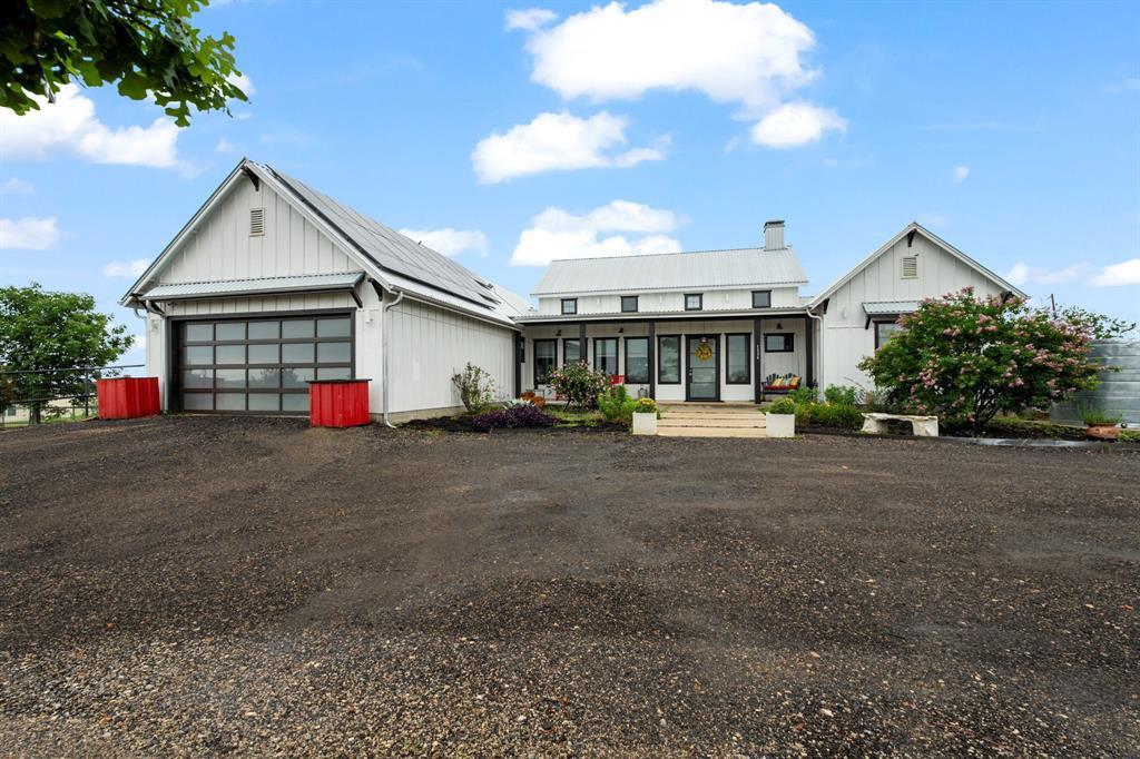 Red Barn Retreat – Modern farmhouse luxury on over 3 acres in the heart of Celina. Enjoy peaceful sunrises from the master suite, kitchen, living room, and screened-in patio, and relaxing sunsets from the rocking-chair front porch. This exquisite ranchette features an open floor plan with cathedral ceilings, a chef’s kitchen with Wolf and Miele appliances, accordion glass doors to the patio, and a resort-style pool. Spacious bedrooms, gaming loft accessible via fold-down stairs, storm-safe laundry room, and luxury primary suite with clawfoot tub and huge walk-in shower. Outside: insulated 1,800+ sq ft barn-shop, mini-barn (goats), fenced greenhouse, garden, and shed. Property is fully enclosed with high-quality metal fencing, livestock-grade panels, and a gated entrance for privacy, security, and peace of mind. Energy-efficient with solar, deep well, tankless water, foam insulation, and propane generator. Just 1 mile from the new DNT, Methodist Hospital & proposed Celina High. Private, sustainable, and investment-smart.