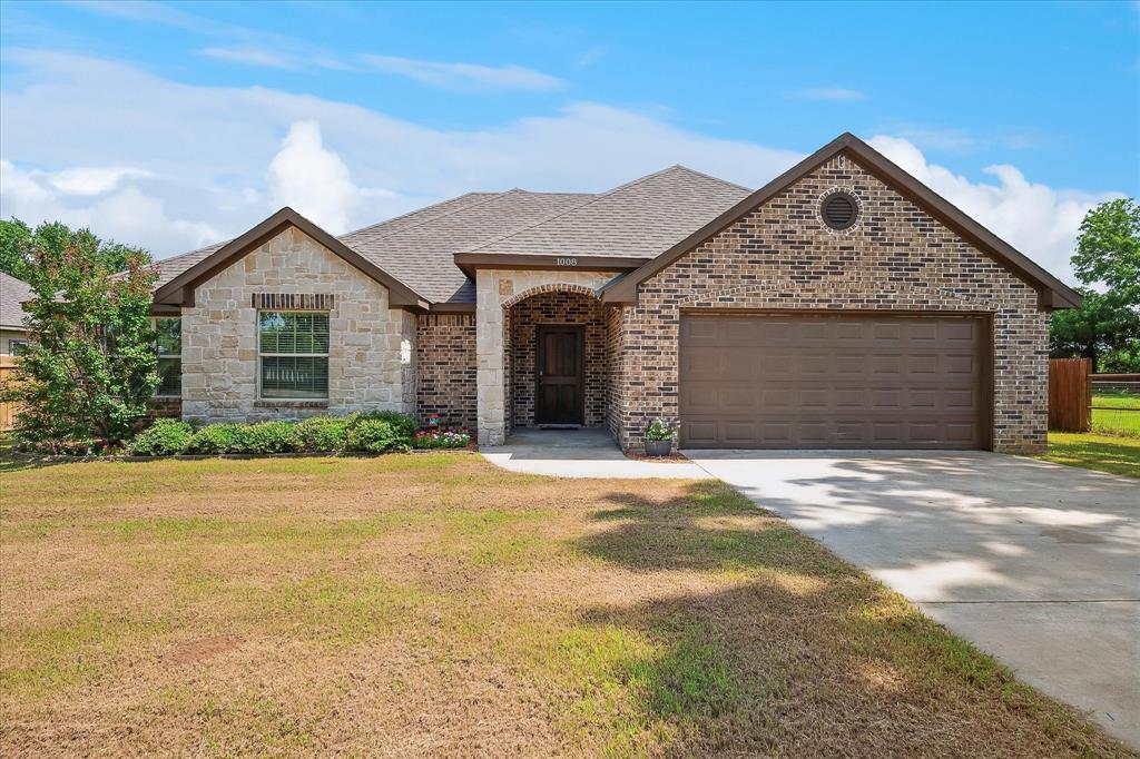 Nestled in the charming town of Tioga, this beautifully maintained, like-new home boasts exceptional curb appeal on a spacious 0.337-acre lot. Designed for comfort and functionality, the chef’s kitchen is outfitted with elegant Knotty Alder cabinets, granite countertops, and sleek stainless-steel appliances—including a gas range—seamlessly connecting to the warm and inviting family room with hardwood flooring. The primary suite offers a private retreat with a trayed ceiling, dual sinks, a garden tub, a separate shower, and a generous walk-in closet. Two well-sized secondary bedrooms, along with a second full bath and a convenient full-sized utility room, provide ample space for everyday living. Step outside to a large, lush backyard, perfect for kids and pets to roam freely, or unwind on the covered patio in shaded comfort. Energy efficiency is maximized with spray foam attic insulation, ensuring year-round comfort. Outdoor enthusiasts will delight at the home's close proximity to Lake Ray Roberts which offers fishing, boating, hiking and camping activities. Living in Tioga means enjoying the best of both worlds—a peaceful small-town atmosphere with easy access to the amenities and excitement of the DFW Metroplex. No HOA.