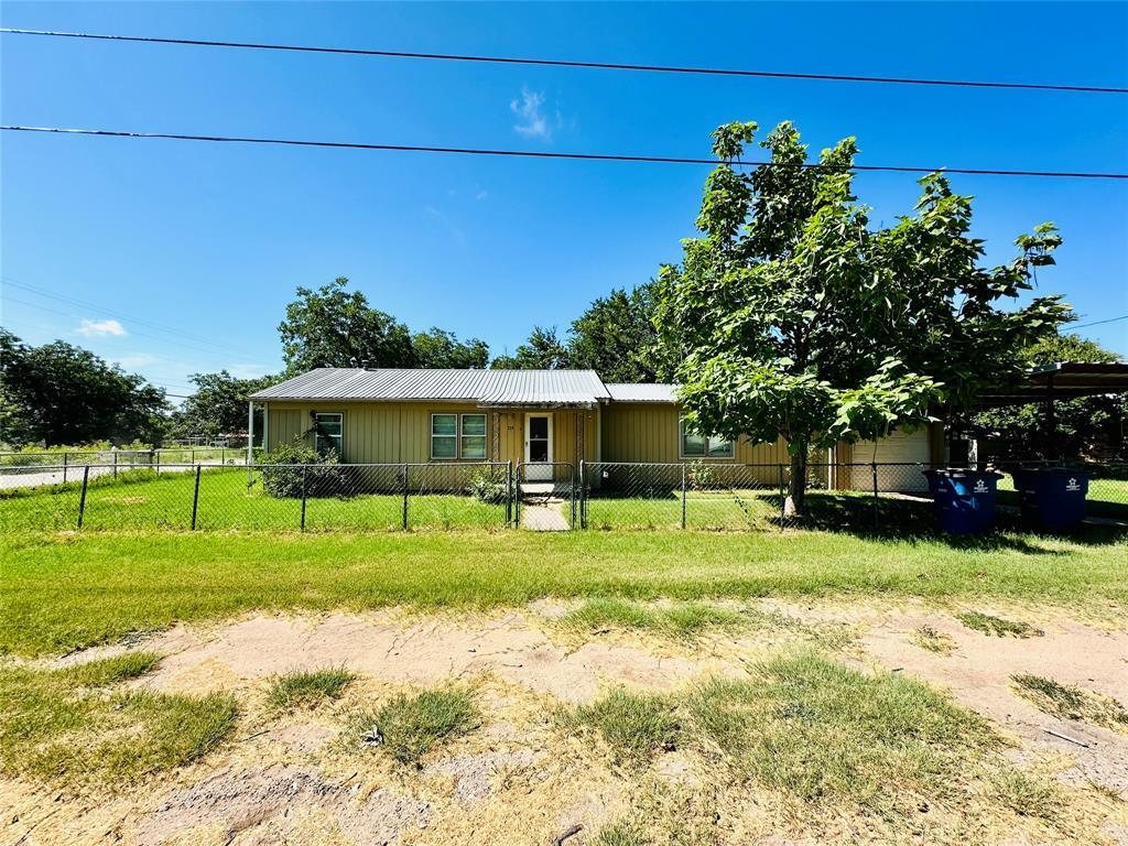 This corner property has a great chain link fence around the yard. The 1972 built frame and wood 1,376 sq ft home has 3 bedrooms 2 baths and an office area or could be a 4th bedroom. The living room has hardwood flooring which is exposed and beautiful and there are other exposed wood floors in the closets which makes it seem like they would run in the entire home. The dining room and kitchen could be opened up to each other for a more modern feel and better viewing and entertaining. The primary bedroom has carpet and an ensuite bath with shower. The front bedroom, bath and office all have access off a hallway. the bathroom has been updated with tile surround for the tub shower combo. The back bedroom has access off the dining room and has two closets with bi-fold doors. The laundry room opens to the back yard and has plenty of space for an extra fridge or freezer. The back yard is small, but the west side yard is big enough for a swing set, pool or play area for the kids or extra parking for your boat or projects. This home is only a block from Cross Plains ISD so walking to school is easy.