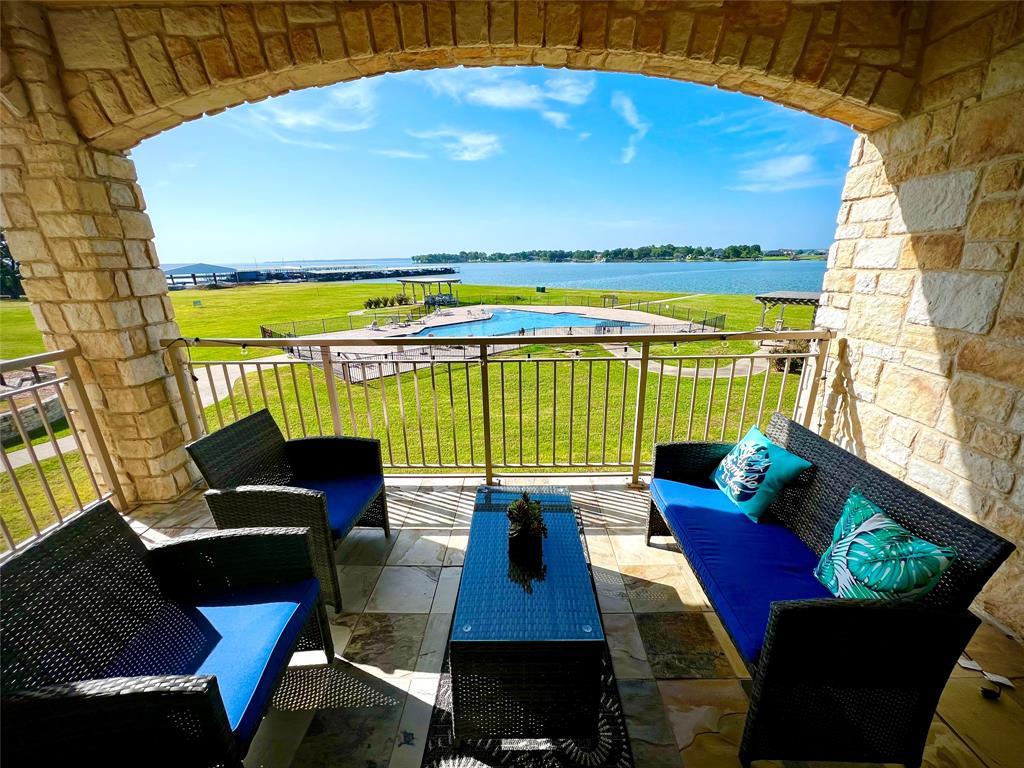 LAKE FRONT LIVING! AMAZING VIEWS from your private balcony overlooking the lake and pool! 2 bedrooms 2 full baths and SOLD FULLY FURNISHED! Just move right in! Only 1 hour from Dallas. Nearby Corsicana has all shopping needed. Club house amenities include fitness center, kitchen, and dressing rooms. Boat slips or boats may be rented next door at the Harbor Inn Marina. Walk to lake front bar & grill which hosts live music (also has concert pavilion). Great options for full time living or weekend getaway. Walk to bar and grill or the marina. VRBO - AirBnB - vacation rentals allowed. Whether this is your new home sweet home or your weekend get a way, it is LAKE LIVING at it's BEST!