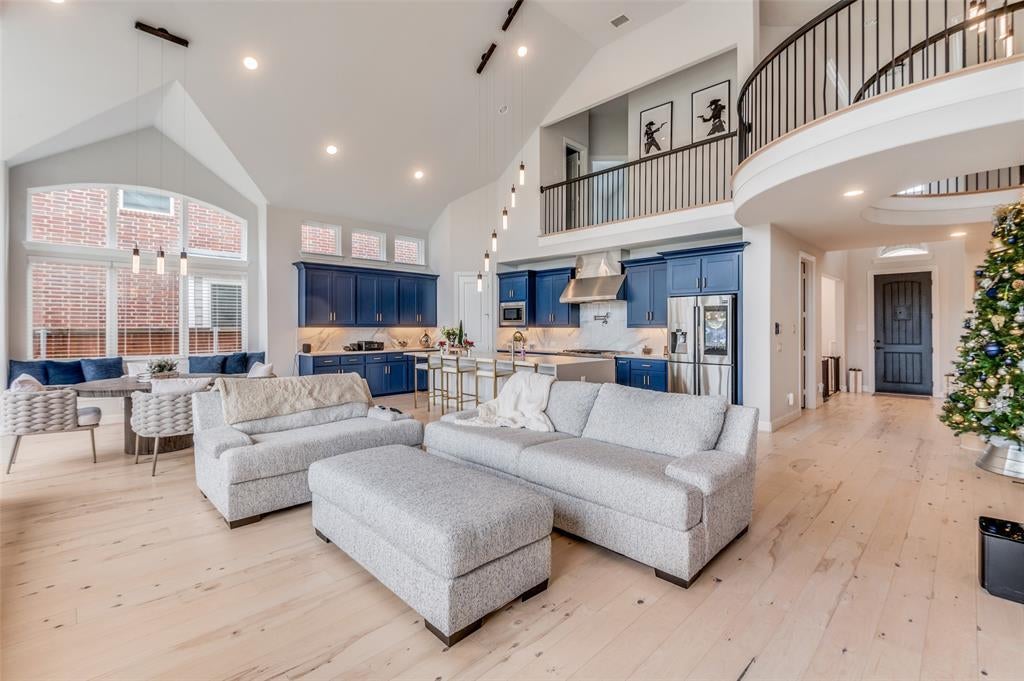 Welcome to this exceptional 5-bedroom home in the highly desirable McKinney area. This like-new Grand Home features over $200,000 in premium upgrades and thoughtful designer finishes throughout. Situated on a premium lot that backs to an open trail, the home offers a bright, open layout filled with natural light. The gourmet kitchen is equipped with a commercial-grade vent and cooktop, double dishwashers, and a large waterfall island. Above-counter sinks with Delta faucets add a sleek, modern touch. Enjoy high-end real wood flooring, fully tiled bathrooms from floor to ceiling, and upgraded carpet upstairs. The striking 360-degree staircase provides a stunning view of the downstairs living area. Additional highlights include 9.2 surround sound prewiring, five floating outlets behind bathroom mirrors, and two 220V outlets in the garage—ideal for EV charging. Currently leased through November 2025 with a monthly rent of 7500, offering an excellent investment opportunity. This beautifully upgraded home blends luxury, comfort, and functionality in one of McKinney's most sought-after neighborhoods.