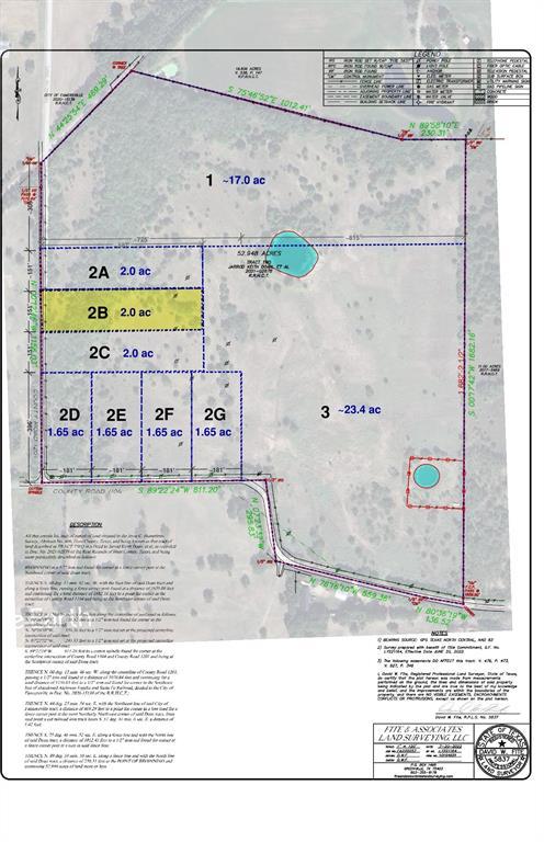 Additional listed tracts are available, including 1.65-acre, 2.5-acre, 17.3-acre, and 21.6-acre plats. Pricing: Parcel 1 – $544,000; Parcels 2A, 2B – $110,000 each; Parcel 2C – $114,000; Parcels 2E, 2F, 2G – $94,050 each; Parcel 2H, 2I – $55,000; Parcel 3 – $678,600. Custom configurations available upon request. Note: The subdivision plan is proposed and not yet platted. Once the buyer is committed to a location and final parcel size, the plat plan will be done prior to closing.