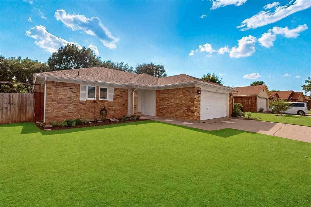 Beautiful 3 bed, 2 bath home in Watauga. Upon entering, you are welcomed into the large living area with stunning fireplace and built-ins. The back wall is full of light from the new Pella windows throughout the home. Bay windows add to the lovely dining area. The kitchen features a bevy of cabinets, granite counter tops with a nice pass through area, plus new dishwasher and built in microwave. Full house water purifyer. The primary bedroom is roomy with a generously sized bathroom and walk in closets. Both secondary bedroom are nicely sized. The backyard features a covered patio and a plus sized yard that backs to easement property for added privacy. Foundation done in 2021 with lifetime warranty. 30 year roof less than 5 years old. Close to Arcadia trails park, BISD park and TRE rail station.