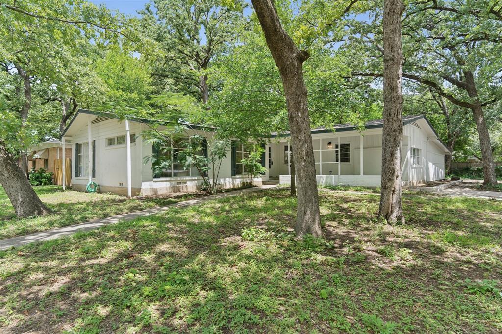 INVESTORS DELIGHT! Bring your REMODELING IDEAS out to Arlington Gardens, where every home feels like it's nestled in a park-like setting, surrounded by mature trees and timeless character! This charming 3-bedroom, 2-bath residence offers a rare opportunity to own a piece of mid-century architecture in a well-established neighborhood where pride of ownership shines throughout*Built in 1954, this home features 2 living areas, 2 dining spaces, and beautiful original hardwood floors throughout most of the home, complemented by easy-care wood-look vinyl in select areas*The white brick exterior with black trim offers classic curb appeal, and the covered front porch is the perfect spot to unwind*The kitchen overlooks the lush backyard canopy and is equipped with an electric cooktop, oven, dishwasher, extended countertops, and ample cabinetry. The adjoining breakfast room features a large picture window with views of the front porch, filling the space with natural light*The utility area is conveniently located in the kitchen with room for a full-size washer and dryer*The spacious second living area is ideal for a playroom, game room, or flexible family space*The primary suite offers a private ensuite bath with shower, and all 3 bedrooms include generous closets*Situated on a desirable corner lot, the property also includes a 1-car carport with additional storage for lawn equipment, and a charming brick patio—perfect for outdoor gatherings. HVAC replaced in 2020, Water heater replaced in 2023, Roof replaced in 2019, Plumbing pipes completely redone in 2019*With great bones and an unbeatable location near UTA, this home offers a wonderful opportunity to make it your own!