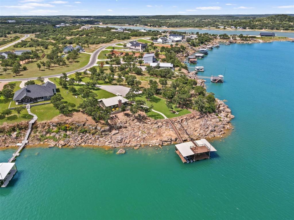 Welcome to your dream retreat on the crystal-clear waters of Lake Cisco. This immaculate lakefront home sits on a premium deep-water lot and offers the ultimate in lakeside living. Boasting panoramic views, a custom two-story dock with a boat lift, and stylish interior finishes, every detail of this property is designed for relaxing and entertaining in style. Step inside to a light-filled, open-concept layout featuring vaulted ceilings, exposed wood beams, designer lighting, and a gourmet kitchen outfitted with quartz countertops, a farmhouse sink, open shelving, and a premium gas range. The spacious living room centers around a charming brick fireplace and expansive picture windows that perfectly frame the lake views.The thoughtfully designed layout includes a cozy bunk room perfect for guests or kids, while the private primary suite offers serene lake views, warm wood accents, and elegant finishes. Outside, you’ll find a covered porch, lush landscaping, and a level backyard that gently slopes to the water’s edge. The impressive two-story dock includes a boat lift, jet ski dock, storage, entertaining deck, and multiple seating areas to take in the breathtaking surroundings. For those cooler evenings, gather around the inviting lakeside fire pit with string lights & seating—perfect for making memories under the stars. Whether you’re hosting summer weekends or escaping for quiet evenings by the water, this turnkey lake home checks every box—deep water, designer style, and one of the best lots on Lake Cisco. The perfect place for you and your family to relax, enjoy and create cherished memories for years to come!