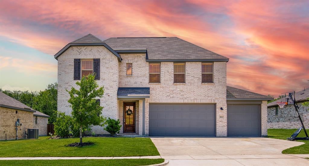 Experience elevated living in the heart of Anna with this exceptional 5-bedroom, 3-bathroom home located in the desirable Park Place community. Built in 2022 & meticulously maintained, this expansive residence effortlessly combines sophisticated design with everyday comfort. From the moment you step inside, you're greeted by tall ceilings, a soft neutral color palette, & wide-plank luxury vinyl flooring that flows throughout the main living areas. Perfect for entertaining, the kitchen features soft gray cabinetry, gleaming quartz countertops, & a generous island. Designer touches like a subway tile backsplash & farm-style sink add timeless character. Natural light pours in through a wall of windows in the main living area, creating a bright & welcoming atmosphere. The downstairs layout includes a guest suite with a full bath. The luxurious primary suite overlooks the tranquil, tree-lined greenbelt & boasts a spa-like ensuite bath with dual vanities, garden tub, separate glass-enclosed shower, & a spacious walk-in closet.