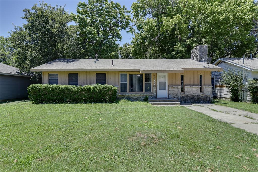ALERT! NEW ROOF! Charming Home in Established Cleburne Neighborhood. Located in the heart of the Original Cleburne Subdivision, this inviting 3-bedroom, 1-bath home offers timeless character and opportunity. The property sits in a well-established neighborhood with mature trees and a welcoming atmosphere—perfect for first-time buyers or investors looking to personalize a space. Step into a spacious living room centered around a striking brick, wood-burning fireplace—ideal for cozy nights or entertaining guests. The kitchen features ample cabinetry, laminate marble-look countertops, and a new electric range. It’s also pre-plumbed for gas, offering added versatility for future upgrades. Just off the kitchen, a convenient dining nook flows seamlessly into the cooking space, perfect for casual family meals. All bedroom's feature upgraded wood-like laminate flooring and decorative lighting. The primary bedroom boasts a generous walk-in closet, while the second bedroom also includes a walk-in closet with built-in shelving, and the third offers ample storage space. The bathroom includes built-in shelving for linens, with a designated closet housing the water heater. Outside, enjoy a large, covered patio shaded by mature trees—an ideal setting for relaxing evenings, weekend gatherings, or playtime with pets and children. The backyard is grassy, cleared, and fenced, while the front yard showcases neatly groomed bushes and a lush lawn. Indoor AC furnace is 4 years old and the water heater is 1 and half years old. While the home has received fresh paint in several rooms, it’s priced to sell “as-is,” giving buyers the freedom to make aesthetic updates and truly make it their own. A great opportunity to build equity in a desirable area—schedule your showing today!