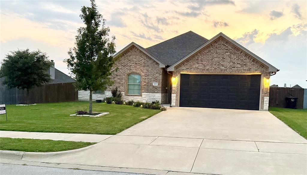 Just minutes from the lake, this 3-bedroom, 2-bath home with 1,780 sq. ft. is located in the quiet Cross Creek Estates neighborhood. Set on a rare .37 acre lot, the property offers more space than most in the area. The open-concept kitchen, dining, and living areas are perfect for gatherings, with sit-down dinner seating for up to 14. The kitchen includes white and gray shaker cabinets, granite countertops, a white subway tile backsplash, and an upgraded drop-in double-oven glass top range for a modern built-in look. Additional highlights include a large island with storage, side bar with cabinets, and modern black fixtures with white cylinder lights above the island. The master suite features a tray ceiling, walk-in closet, garden tub, tiled walk-in shower, and double sinks. Architectural upgrades include crown molding, arched doorways, a transom-style window with new black circular modern light, a mudroom bench with shiplap, and stylish bathroom tile that adds a splash of color. Other features include a custom white shiplap fireplace, new roof with rain gutters, covered porches, professional landscaping, and fresh paint. A new GE washer and dryer are included with a full-price offer. The many upgrades make this home a premium value and a smart investment, with space for a pool or deck in the backyard.