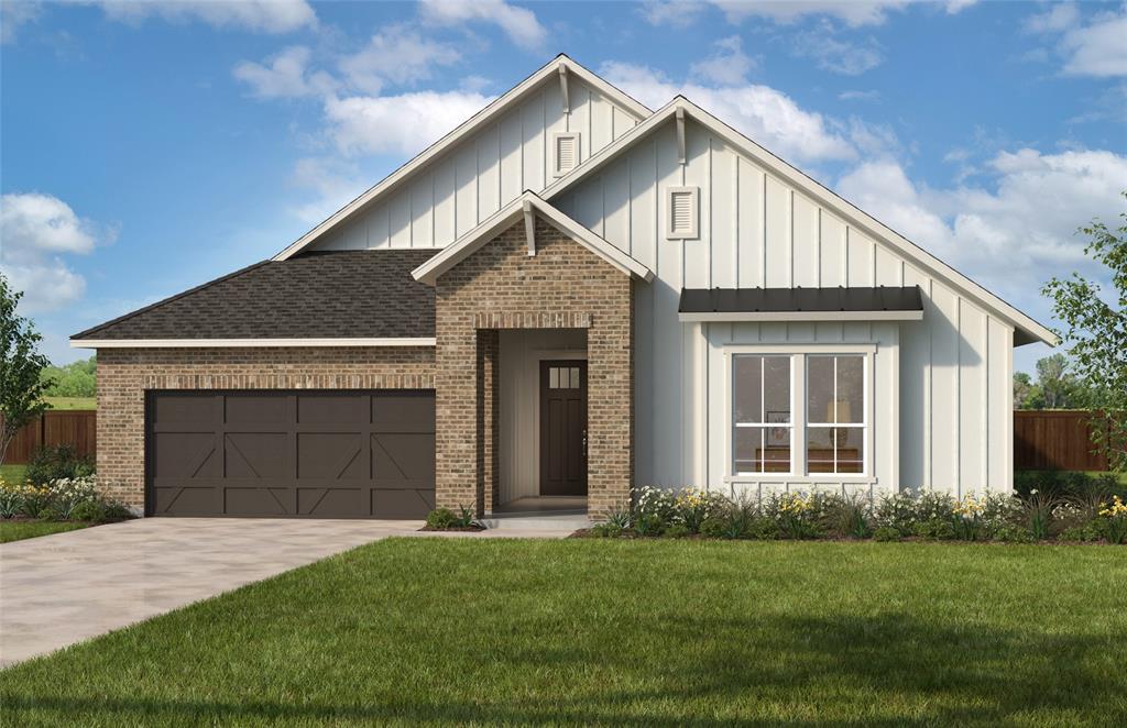 Step into this inviting one-story home featuring a convenient 2-car garage and a cozy den with double doors and also includes a flex room. The kitchen boasts modern Whirlpool stainless steel appliances, a gas range with air fry capability, and upgraded MSI quartz countertops with extended bar top. In the primary bath, enjoy raised cabinets, an extended vanity, and a separate tub and shower area with elegant tile surround. Venture outdoors to relax on the extended covered patio and appreciate the convenience of a full sprinkler system and carriage-style garage door. Additional features include decorative stained entry door, vinyl plank wood flooring, and Kwikset smartkey entry.