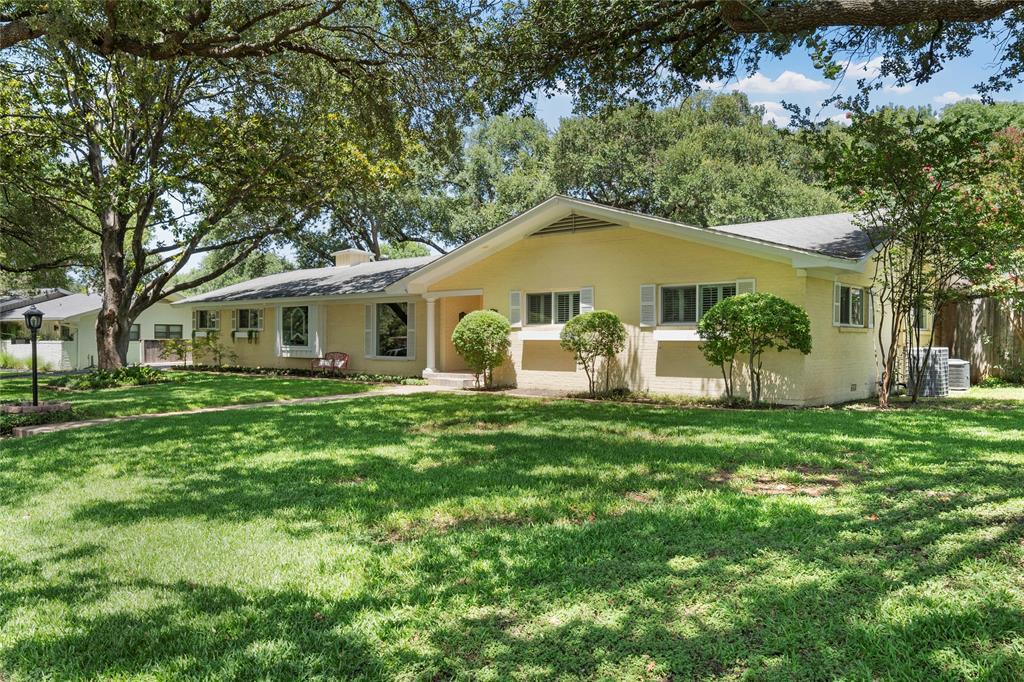 This beautifully updated cottage style ranch home sits beneath the shade of mature oak trees and a stunning magnolia, offering both curb appeal and a sense of timeless charm. Inside, two inviting living areas—including a spacious game room—provide plenty of space to gather, while the open kitchen and family room create the perfect heart of the home. Grand dining room with custom serving area and floor to ceiling picture windows! The remodeled kitchen features a custom island and sleek finishes. Lovely plantation shutters and walls of windows across the back showcase serene & private backyard views. Step outside to your own private paradise: a sparkling pool, lush landscaping, cabana with wet bar, and a large covered patio for year-round entertaining. Every detail has been thoughtfully refreshed—new roofs on all three structures, fresh paint, new flooring, new windows, and a new HVAC system—ensuring comfort and peace of mind. With French doors, crown molding, beamed and vaulted ceilings, and a prime central location in a quiet, tree-lined neighborhood, this immaculate home is as move-in-ready as it is unforgettable.