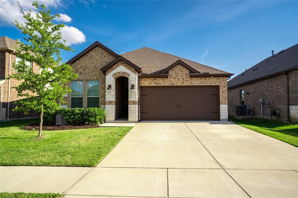 Look and Lease!Move this month! Beautiful 3 bedroom, 2 bathroom home with 2-car garage located in a highly sought-after community. Open floor plan features an island kitchen with granite countertops, spacious living area with gas fireplace, and neutral colors throughout. Primary suite includes dual sinks, garden tub, and separate shower. Ceiling fans in every bedroom. North-facing with a covered back patio perfect for relaxing or entertaining. Community amenities include Resort style pools with splash pad, parks, walking trails, basketball courts, pickleball courts, and open green spaces. Onsite elementary and regular community events. Great location located just off US-Hwy 380 with easy access to Frisco, Prosper and Denton and major retail and dining options. Enjoy the perfect mix of quiet suburban living and city convenience. Pets allowed—dogs and cats welcome. Fridge and Rumba included. Schedule your tour today! Don't miss your opportunity!