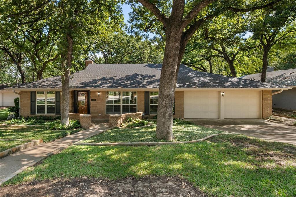 Welcome to 3408 Lynnwood Drive, located in the heart of Arlington’s beloved Woodland West Estates. With mature trees, manicured landscaping and timeless curb appeal; this single-story home offers space, character and thoughtful updates throughout. Step inside and you’re immediately greeted by unique glass art that adds a one-of-a-kind touch to the entry and living space. The formal dining room sits just off the foyer, filled with natural light. The home opens up into a stunning main living area with built-in cabinetry, a raised-hearth gas fireplace and a wall of windows that brings the outdoors in - creating a light and bright atmosphere throughout the living, breakfast and kitchen areas. The kitchen features composite, scratch-resistant countertops, abundant cabinet storage and a convenient breakfast space overlooking the backyard. The open layout makes it easy to entertain or stay connected with family; and, the natural flow throughout the home is one of its most impressive features. The private primary suite is tucked away on one side of the home; offering LVP floors, dual vanities, a walk-in shower and a large walk-in closet with custom shelving and hanging space. On the opposite side, two additional bedrooms feature ceiling fans and share a spacious full bath with granite countertops and linen storage. A full-size laundry room with built-in cabinetry and an attached two-car garage offer added convenience. Out back, the covered deck provides a shady spot for relaxing or hosting with mature trees, a storage shed and a sprinkler system to keep it all maintained. This meticulously maintained home with no HOA offers the best of both comfort and convenience in an established neighborhood full of character.