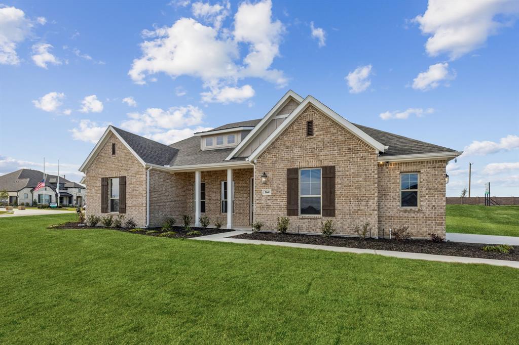 Move-In Ready new construction family home in Lakeway Estates within Waxahachie ISD with NO MUD or PID. Open concept Energy Star certified one-story home on a 1.13-acre lot accented by beautiful landscaping, high ceilings, large double pane windows, oversized kitchen island with quartz counters, champagne-bronze hardware-cabinet pulls throughout kitchen and master bathroom. Featuring the chef’s kitchen, complete with an oversized island topped with quartz countertops, upgraded sink and stainless-steel Whirlpool appliances. The home offers four spacious bedrooms and two and a half bathrooms, including a luxurious primary suite with an oversized walk-in closet, soaking tub, large walk-in shower with bench, and stylish fixtures. Large dining space with ample natural lighting, vaulted family room ceiling, and a built in corner desk. Additional highlights include an epoxied two-car garage, covered front and back porches perfect for outdoor entertaining, and a spacious, beautifully fenced backyard with endless potential. Included features like spray foam insulation, a touchscreen Honeywell thermostat, a built-in mud bench, and laundry room cabinetry ensure comfort and convenience year-round. Right by miles of walking & biking trails, fish stocked lake, pools and events inspired by the Historic City of Waxahachie. Enjoy one of the most serene developments Waxahachie has to offer, just a short drive to Historic Downtown Waxahachie, top-rated schools, established grocers, restaurants, dining and more! BONUS: No rear neighbors