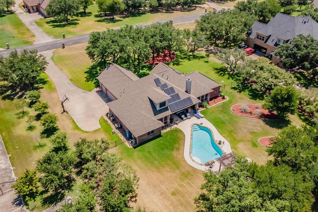 Solar Savings for Life! Paid-In-Full Panels Convey to Buyer! Enjoy substantial energy savings for the lifetime of this immaculate, move-in ready four-bedroom, four-bath home located in the highly sought-after gated community of Boling Ranch Estates. This beautifully maintained property offers a flexible layout, thoughtfully designed living spaces, and a backyard oasis perfect for both entertaining and everyday relaxation. The kitchen features a center island, a breakfast bar for casual dining, walk-in pantry, and plenty of cabinetry for storage. It’s also plumbed for gas, ideal for the home chef who enjoys cooking with precision and control. Off the main living area, you'll find a dedicated home office complete with a closet, which offers the versatility to function as a 5th bedroom if needed. Upstairs, you will find a generously sized bedroom with its own full bath and closet, that could also serve as a media or game room. The primary suite offers a tranquil retreat, featuring a spacious layout, ensuite bath, and ample closet space. Secondary bedrooms are well sized, providing comfort and privacy for family members. Step outside to your own private paradise into the oversized backyard, fully equipped for outdoor living and enjoyment. At the center is a beautiful saltwater pool with water features, perfect for cooling off on warm Texas days and entertaining guests. A charming gazebo offers a shaded space to relax or host gatherings, and a custom wood burning pizza oven. A workshop with electricity provides the perfect setup for hobbies, storage, or DIY projects, in addition to a separate storage building for lawn equipment. The property includes both a private water well, dedicated to irrigating the yard and landscaping, and Co-op water service for the home, Solar Panels; installed in September of 2020. This home offers the perfect blend of comfort, functionality, and outdoor living in a peaceful, gated community. Don't miss the opportunity to make it yours!