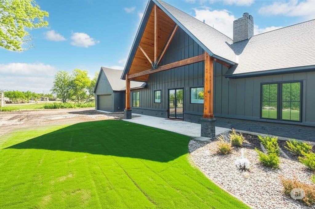 This brand new build is nestled on a secluded 1.6-acre corner lot. This stunning home offers a perfect blend of privacy and modern luxury with the added benefit of no homeowners' association (HOA). Located outside of city limits, you can enjoy the freedom and tranquility of country living. Designed for both comfortable living and grand entertaining, the residence features a thoughtfully crafted open floor plan. Step inside to be greeted by the warmth of real wood floors that flow seamlessly throughout the main living areas. The living room is a true showstopper, with its magnificent 25-foot vaulted ceilings. This custom home is defined by its attention to detail, with cedar planks gracefully lining the underside of the front and back porches, supported by huge cedar beams—a testament to its superior craftsmanship. Built with superior energy efficiency in mind, the home boasts 2x6 exterior framing and encapsulated spray foam insulation in the exterior walls and decking, providing an exceptional thermal barrier. A high-efficiency 5-ton HVAC system ensures year-round comfort with minimal energy consumption. The expansive property provides a blank canvas for your vision, with plenty of room to add a custom pool, a large workshop, or create the outdoor oasis of your dreams. Enjoy peaceful evenings and morning coffee on the spacious covered patio and porch, perfect for taking in the serene surroundings. This is more than a home; it's a lifestyle of tranquility and sophistication with the freedom to make it your own.