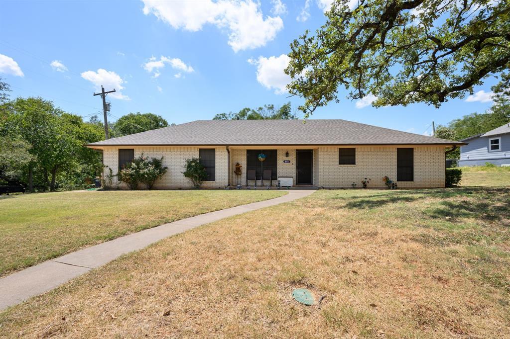Welcome home to this well-maintained, lovely three bedroom, two bath brick home just a few blocks North of downtown Weatherford! Favorite features: Large living area with gas fireplace, roomy dining area; custom built, wood counters and cabinets in kitchen; two-car garage and kitchen access from separate utility room; large primary bedroom with awesome ensuite bath; enclosed sun porch with access to covered back patio; finished out electric outbuilding with wall unit for AC; nice corner lot; huge backyard with trees and chainlink fencing; and quiet neighborhood with extra wide street parking. New roof was installed July 2025! After feedback, Seller will be having cabinets customized to make space for a refrigerator and a dishwasher. See mockup in photos. What's not to love?!! Schedule a showing today!