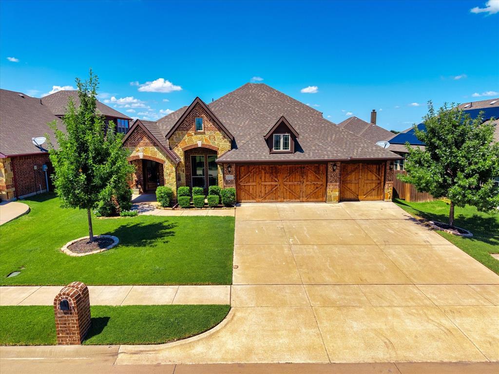 Beautiful yard & landscaping and well kept home! Offers 4 bedrooms, 3 full baths, 3 car garage, 2 living areas, 1 dining, an office, plus a flex space office area with built in granite top desk upstairs. It has an open floor plan with 2 inch blinds & tall baseboards throughout. There is ceramic tile, carpet, lots of ceiling fans & 2 AC units. Enter into the foyer with archway and enjoy the office with french double doors, then head to the kitchen which has granite countertops, tile backsplash, stainless steel appliances including a built in microwave, oven, dishwasher, vent hood, flat cooktop, plenty of counter space, and an island with space to enjoy breakfast. Spacious dining room and large living room. This home has split bedrooms! 2 bedrooms near kitchen with full bath and laundry room which leads out to the 3 car garage. Then go pass the living room to get to the master suite with a view of the backyard. The master bathroom has a garden tub, separate shower, 2 sinks, private toilet area, and a walk-in closet. Go upstairs to the flex office area with built in granite top desk. The family room or game room overlooks the downstairs area, there is a full bath, and the 4th bedroom upstairs as well. The backyard is built for entertaining with the covered patio and gorgeous landscaping with sprinkler system throughout front & back. And don't forget about the large covered front porch where you can sit and relax as well. A great community, there is no HOA and there is a park with a great water park for the whole family to enjoy on these hot summer days. This home is located in a fantastic area close to schools, shopping, eateries, highways, and so much more. Hurry, don't let this beauty get away from you!!!