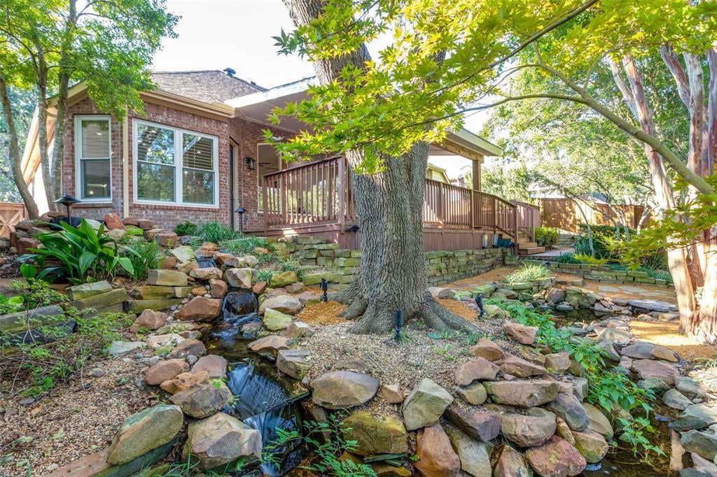 Welcome home to a stunning property where comfort and style meet in the highly sought after Fawn Hollow section of the Eldorado neighborhood. This isn't just a house; it's a lifestyle upgrade. The backyard deck, koi pond, and dog yard or play area are the stars of this home and your own private oasis. From the beautiful front yard, step inside and feel the elegance of the grand entryway that flows into the sophisticated formal living and dining rooms. The back of the home opens to a spacious family room, featuring a cozy fireplace, custom built-ins, and large windows with beautiful views of the terraced backyard. For the aspiring chef, the kitchen is a masterpiece. It boasts a convection oven and warming tray, a built-in cooktop, gleaming granite countertops, and abundant cabinet space. A closet pantry and a breakfast bar connect the family room, while the sunny breakfast nook provides access to the covered deck, an ideal spot for entertaining or relaxing outdoors. Escape to your private sanctuary in the owner’s retreat, complete with a sitting area and French doors leading to the deck. The luxurious ensuite bath features dual sinks, granite countertops, a soaking tub, and a separate shower. The home's thoughtful layout includes a versatile secondary bedroom, perfect for a home office. A third generously sized bedroom with walk-in closet. The hall bath also offers dual sinks and granite countertops. Every detail has been carefully considered, from the durable hardwood and ceramic tile flooring to the elegant 4inch plantation shutters. Outside, discover your own backyard paradise with a covered deck, calming koi pond, and a fenced dog run. The property backs to a beautiful greenbelt and creek, offering unparalleled privacy and nature views. This Eldorado gem is a rare find, combining exceptional design, function, and outdoor beauty. It's ready to welcome its next owners. This home is in McKinney ISD, where you can now pick your school for K-8th grade.