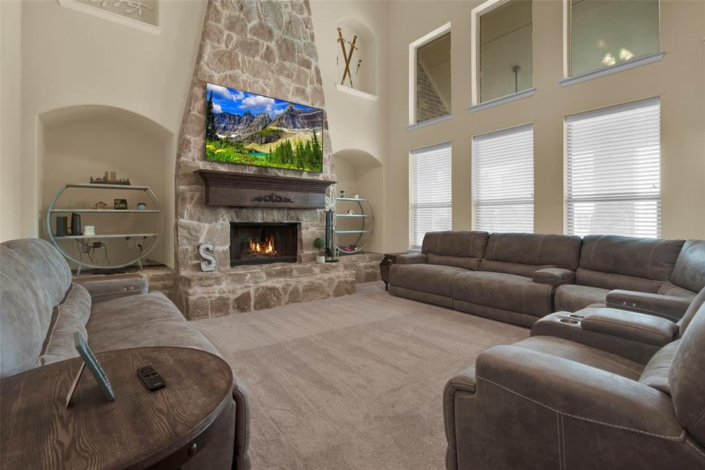 **Price Adjustment by Motivated Seller**Only 22 Miles from DFW Airport. A coveted second bedroom downstairs with adjacent full bath & step in shower is perfect for multi-generational living or extended house guests. An outdoor Oasis awaits you in this West Facing Executive Home. Situated on over a third of an acre, the corner lot features an entertainer's dream with sparkling heated pool, spa, playground, large covered patio with fireplace, ceiling fans & a dry bar! The custom stone fireplace meets the 20 ft height vaulted ceilings with large picture box windows for natural light in the living room. The open concept kitchen island is surrounded by stone beckons you to cook with stainless double ovens, gas stove & prep island with an extra sink. The primary suite has its own climate control & is tucked at the back of the home with an ensuite bath, 5 ft depth shower, separate vanities & his & hers walk in closets. Elegant crown molding in the living room & chair rail surrounds the formal dining room. Beautiful balconies adorn the front and back of home & one even overlooking the living room. Follow the hand-scraped wood stairs accented by tile to 3 large bedrooms each with walk-in closets & expansive game room upstairs large enough for a pool table. Media room complete with wet bar, bar for seating, is ready to host conveying all media Audio Visual equipment. Three-car garage with two power circuits has been insulated & soundproofed. Water Heater, pool sweep pump & microwave new 2025! Power conditioner for the entire home ’24. New 8’ privacy fence, Fiber Hookup, custom cat ethernet cable, 12’x16’ weather resistant floor shed, & playground all in ‘23. Google Nest thermostat and Smart Pool Features. 1.2 miles to Highway 35, Minutes from Lake Lewisville, near Hidden Valley Private Airport, walking distance to Agora Park, baseball & soccer fields & public fishing pond.3-D Walk-Thru loaded ask your agent or contact listing agent to send it to you!