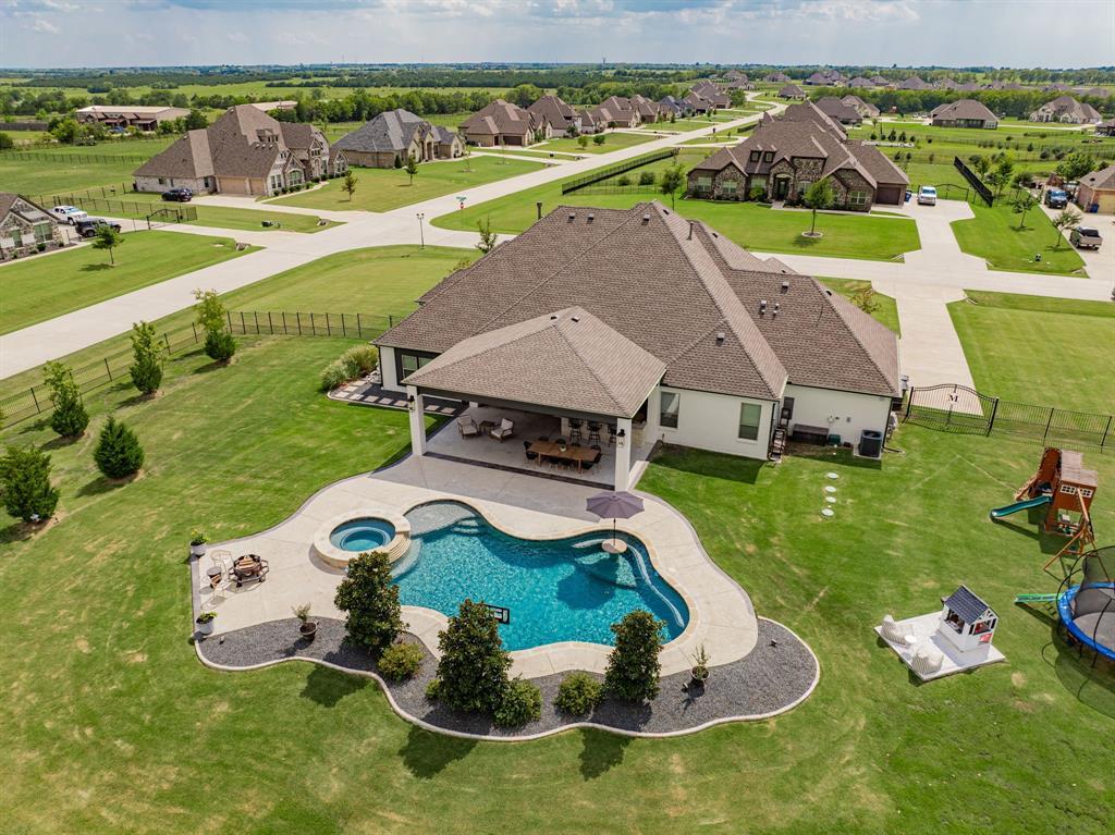 Luxury Living on 1.5 Acres in Rockwall! This stunning single-story residence offers over 3,000 sq. ft. of elegant living space on a beautiful corner lot spanning 1.5 acres. Designed for both entertaining and everyday comfort, with a custom patio, full outdoor kitchen, heated swimming pool, hot tub and lush landscaping. Inside, the gourmet kitchen is a chef’s dream featuring double ovens, custom cabinetry, undermount cabinet lighting and upper cabinet lighting, large walk in pantry and expansive counter space. The open-concept layout flows seamlessly into the spacious living areas, while a game room, private study, and formal dining room provide versatile spaces for work, play, and hosting. With 4 bedrooms, 3.5 baths, Study, Game Room, Formal Dining and a 3-car garage, this home is thoughtfully designed to balance privacy and convenience. The primary suite offers a luxurious retreat, while the additional bedrooms provide plenty of space for family or guests. Located in highly acclaimed Rockwall-Heath schools within Rockwall County, this property benefits from a low tax rate, NO MUD tax—a rare combination of luxury and value. Pool has a custom safety fence as shown in one of the pictures, in ground landscape surround sound speakers, up lighting at trees, tankless hot water heater, rounded corners, crown molding, custom built in at game room and more! Whether relaxing poolside, entertaining in the outdoor kitchen and living area or enjoying the quiet beauty of your own private acreage, this property truly has it all. OPEN HOUSE SEP 7th SUNDAY 3:00-5:00PM Football games will be on the patio to enjoy while you tour!