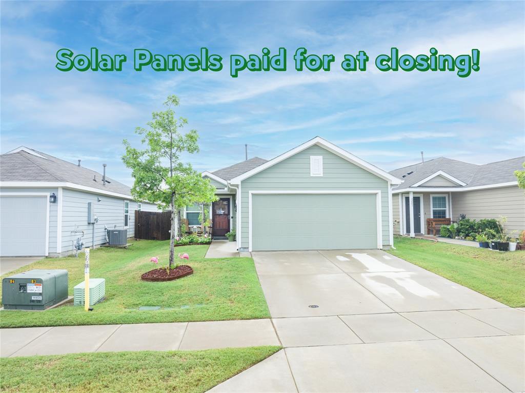 Cute 3 bedroom 2 full bath cottage in popular Preserve at Honey Creek! Recent upgrades include walk-in shower in the Primary Suite, gutters and Energy Efficient Solar Panels that will be paid off at closing! Please see Utilities posted in documents! Home also includes luxury vinyl plank flooring, great kitchen with rich quartz counters, gas cook-top and tons of storage. Huge Primary Suite and update bath with walk in shower. Spacious family room. Large secondary bedrooms and 2nd full bath. Finished out 2 car garage. Large private fenced backyard and perfectly located close to the neighborhood pool, playground, splashpad and Pavilion! 4.5% Qualifying Assumable. See agent for details.