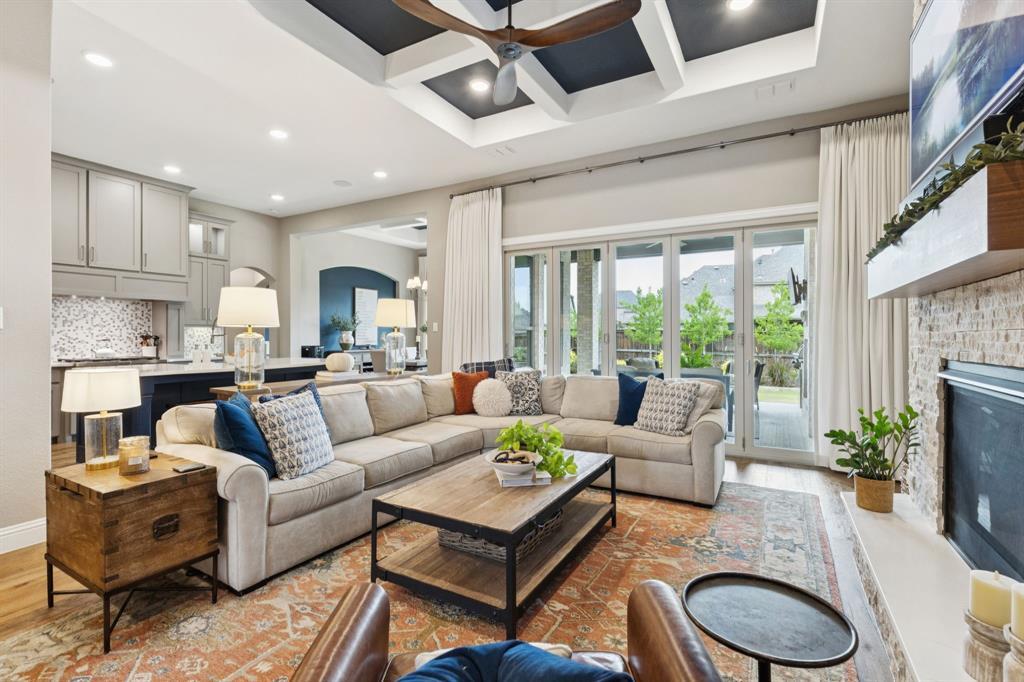Step inside this former Coventry Homes model, where thoughtful design and comfortable living come together in a spacious single-story home loaded with upgrades. This layout features a private suite with its own living room, coffee bar, large bedroom, and walk-in shower—ideal for guests or multi-generational living.The kitchen is the heart of the home with quartz counters, double convection ovens, premium stainless appliances, and generous storage that makes both everyday meals and hosting a breeze. California doors open wide from the central living area to the extended covered patio, blending indoor and outdoor living. Natural light fills the dining area, creating the perfect place for gathering. The dedicated office features custom built-ins that set the stage for productive days.The primary suite feels like a retreat with a private seating area and spa-like features such as separate vanities, soaking tub and Texas sized walk-in shower. The generous primary closet connects directly to the laundry room for added convenience.Two additional secondary bedrooms include bay windows and walk-in closets. The game room offers a flexible space for entertaining. The garages stand out with epoxy flooring and built-in cabinetry, offering storage and room for a workshop or golf cart. The covered outdoor patio offers a spot to relax with a built in grill and fireplace. As a former model home, the builder added over $190K in upgrades to this home and the owner has added even more. Living in Mustang Lakes also comes with resort-style community amenities, including fishing ponds, pools, fitness center, walking trails, tennis and basketball courts, playgrounds, and a full-time lifestyle coordinator.