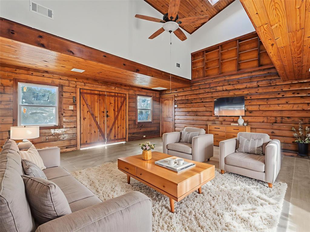 Complete remodel on a secluded 4-acre wooded estate in the heart of Celina, a rare opportunity to enjoy country serenity just minutes from the city. Tucked away on a quiet cul-de-sac and outside city limits with no HOA and no MUD district, this property offers the freedom to create the lifestyle you’ve been dreaming of. Surrounded by majestic mature trees, pecan groves, a peaceful creek, and expansive green lawns, the property combines privacy and natural beauty with convenience to top-rated schools, shopping, and dining. The front portion of the acreage is level and ready for future expansion, while the back features a wooded retreat with a winding creek, perfect for quiet evenings or weekend entertaining. The centerpiece is a fully remodeled 2,700 sq. ft. log home that blends rustic charm with modern sophistication. Featuring 4 spacious bedrooms and 3 full baths, this home boasts a grand 21x20 family room with soaring two-story ceilings and a classic wood stove, a refreshed kitchen with quality cabinetry and thoughtful updates, and a private upstairs owner’s suite with a game room, cedar closets, and a spa-inspired bath. Secondary bedrooms on the main floor include one with an en-suite bath, ideal for guests or a home office. Recent upgrades include:New HVAC systems and ductwork, updated plumbing and water heater,New septic system and propane tank, Fresh insulation for energy efficiency, New wooden bridge (2020), New carpet (Dec 2024). With covered parking, storage sheds, and plenty of room to grow, this secluded property is perfect as a luxury residence, peaceful retreat, or investment opportunity. Acreage, privacy, and a complete remodel, this is a rare find in Celina.