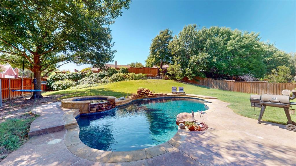 Welcome to 8401 Beech Lane, a stunning 1.5 story residence on a premium corner lot nearly one-third of an acre, nestled at the entrance of a quiet cul-de-sac in the highly sought-after Stonebridge Ranch community. With timeless curb appeal, mature trees, and thoughtful upgrades throughout, this home is truly one of a kind. Inside, every detail has been designed for elegance and comfort. The remodeled interior features a gourmet kitchen with a massive granite slab island, open living spaces, and barnwood tile flooring throughout. The private master suite is a luxurious retreat, showcasing an oversized frameless glass shower, double-sink, dimmable backlit mirror and a Kohler bidet. Upstairs, a spacious bonus room offers the perfect space for entertainment or a cozy date night retreat, while the walk-in attic provides convenient storage. Three air conditioning units and two hot water heaters ensure efficiency and comfort year-round. The backyard is a true oasis. A custom fence surrounds the saltwater pool and spa, complemented by a gorgeous covered patio—ideal for relaxation or entertaining guests. With 5 bedrooms, 3 bathrooms, and a 3-car garage, this home combines space, style, and functionality. No other home compares to 8401 Beech Lane. Don’t miss your chance to own this rare treasure in Stonebridge. SUBMIT YOUR OFFER TODAY.