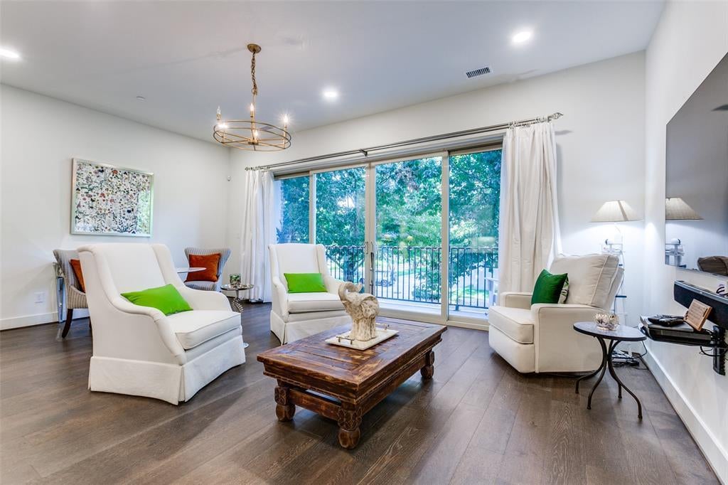 HUGE HUGE PRICE REDUCTION! SELLER PURCHASED A BIG HOME FOR HER BIG DOG WITH A BIG DOGGIE DOOR & SHE IS READY TO SELL! WAY BELOW MARKET IN THE NEWEST BUILDING! THIS IS A BIG OPPORTUNITY! SO DON'T MISS IT! Come see your next dream home, an East-facing elegant flat with the most private and beautiful treetop views in the newest building (only 3 years old) in all of Addison Circle. You'll enjoy the best parking spaces in the building, relax by the pool, and walk to Oktoberfest, Taste Of Addison and Kaboom Town, rated Top 5 Fireworks shows by USA Today! A great floor plan! The kitchen flows seamlessly into the living area, with white quartz countertops, stainless-steel appliances and designer pendant lighting! Plenty of room for guests at the kitchen bar! Solid core doors! Neutral palette with designer paint color throughout. Stunning wide plank wood-type flooring throughout all the main living areas and bedrooms! The spacious living room has a wall of windows onto the balcony with a beautiful view of the trees! The dining area has the same view! This special unit does not look at the next condo complex which is rare! Ceramic tile in the bathrooms. Owner's suite has a luxurious bath with white quartz, dual sinks, large soaking tub and walk-in shower. Huge walk-in closet! DART Silver Line planning a stop on the Circle making transportation easy. Addison is long known as a haven for festival-goers and foodies alike with more than 200 restaurants!