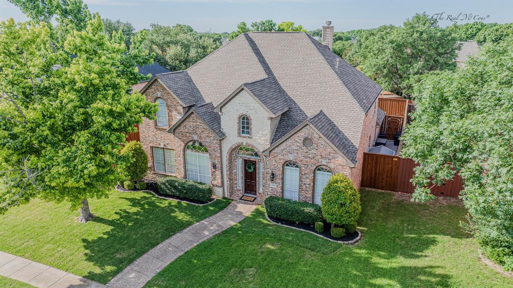 Enter A World Of Elegance With A Grand Entrance Featuring Beautiful Hardwood Floors Leading To A Sweeping Staircase. Explore Bright Formal Areas With Triple Crown Moldings, Plantation Shutters, Hardwood Floors, And Arched Windows, Along With A Roomy Executive Home Office With French Doors And A High Ceiling. The Large Family Room, Complete With A Fireplace And Entertainment Center With A Dry Bar, Offers Stunning Views Of The Lovely Pool And Patio. The Open Island Kitchen Has Sleek Black Granite Counters, Hardwood Floors, And A Walk-In Pantry, Plus A Built-In Desk In The Breakfast Room And A Handy Full Bath Nearby For Swimmers. Every Cook Will Enjoy The Smooth Electric Cooktop And Built-In Convection Oven. The Downstairs Main Suite Features A Two-Step Recessed Ceiling With Crown Moldings, Separate Vanities, A Jetted Tub, And A Large Walk-In Closet. Upstairs, There Are Three Bedrooms, Two Baths, And An Elegant Open Game Room. Enjoy The Luxury Of Spacious Rooms Throughout! Beautiful Backyard With A Well Maintained Pool- Featuring Hayward Pump and Swim Clear Filter Installed in 2024. A Second Outdoor Area Is Off The Kitchen And Has Low-Maintenance Artificial Turf And A Hot Tub—A Perfect Spot To Relax With Friends And Family Any Time Of The Year. Great Location Near 121, DNT, Legacy West, Star Center, Stonebriar Mall, And More!