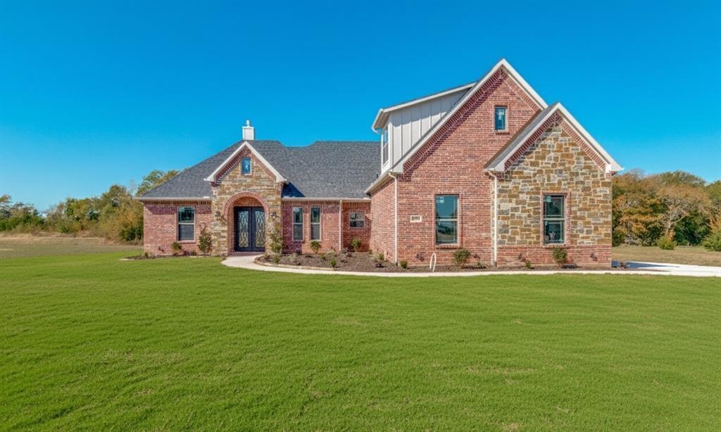 Stunning, never been lived in NEW CUSTOM home on an expansive acre lot with no HOA. The arched iron front doors greet you into the impressive light and bright living room with hardwood floors, fireplace, soaring ceilings and reclaimed wooden beams. Chef's dream kitchen with custom cabinets, massive quartz island, double ovens and pot filler that opens to the living and dining spaces. Retreat to the spacious primary bedroom with dreamy en suite bath featuring a stand alone tub, oversized shower with rain shower head, his and her vanities and a luxurious walk in closet! Office with French doors off the living room. Large guest bedroom with walk in closet has 2nd full bath around the corner. 3rd and 4th downstairs bedrooms share third full bathroom. Upstairs you'll find a spacious 2nd primary suite or bonus room with walk in closet and ensuite 4th bath. Covered back porch overlooking mature trees in the backyard. House slab sits on 47 piers with soil injections and spray foam insulation. Ready to move in!