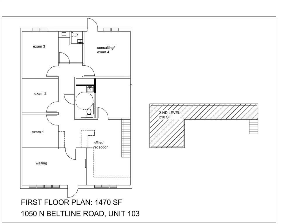 Nice Medical Condo bldg. Awesome location, Large Backlit Monument signage on Belt Line Road with 20,000+ VPD. Visible from Post Office, Mesquite Rehabilitation Hospital & Regional Hospital and Mesquite Municipal Building. Space has a reception, secretary area with counter and upper cabinets, 4 exam rooms, offices with windows, storage, rest Room. Back door with access to rear private parking, ample guest parking in front of the building.